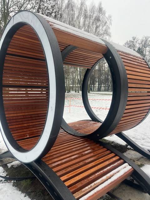 Zadanie obejmowało wykonanie i montaż miejsca do odpoczynku, tj. ławki rekreacyjnej dwumiejscowej wyposażonej w dekoracyjne oświetlenie ledowe.