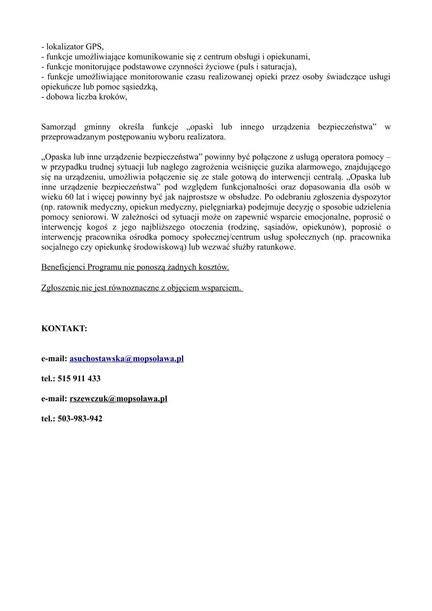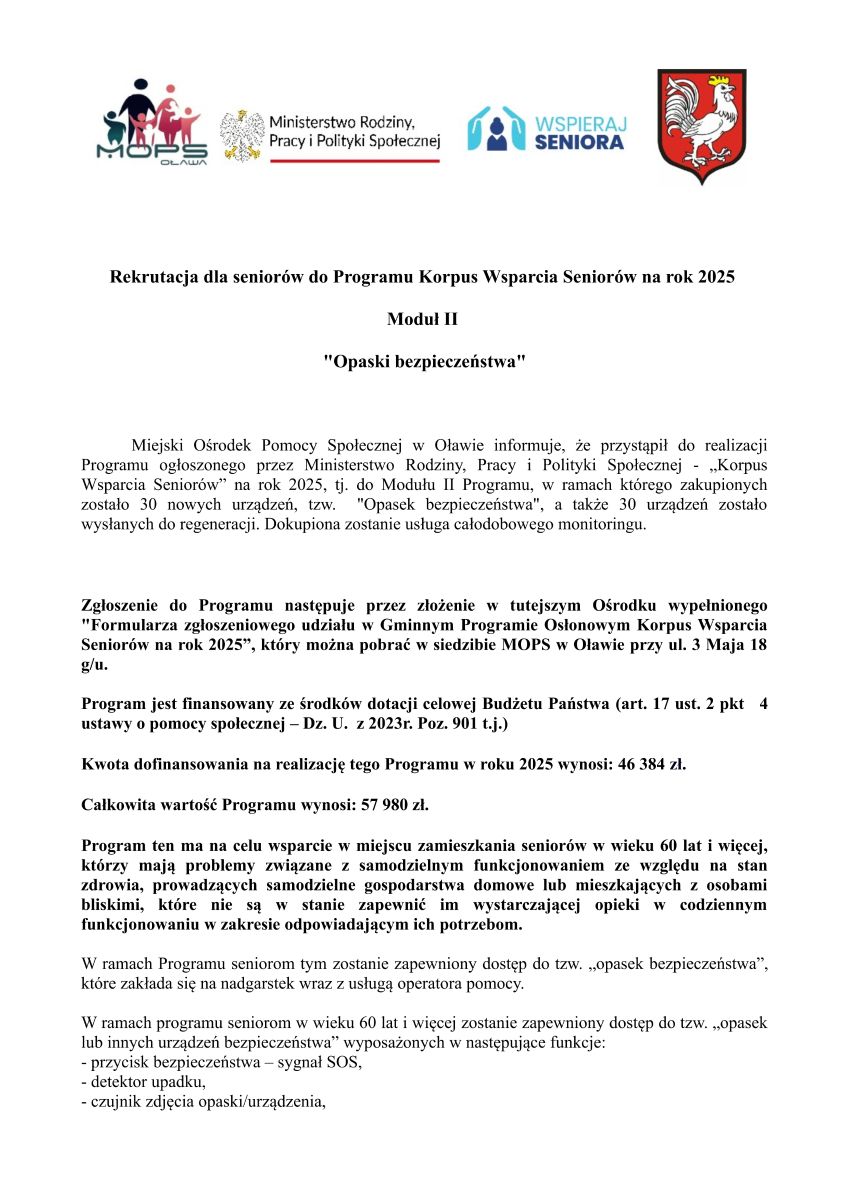 Wsparcia Seniorów” na rok 2025, tj. do Modułu II Programu, w ramach którego zakupionych zostało 30 nowych urządzeń, tzw. "Opasek bezpieczeństwa",