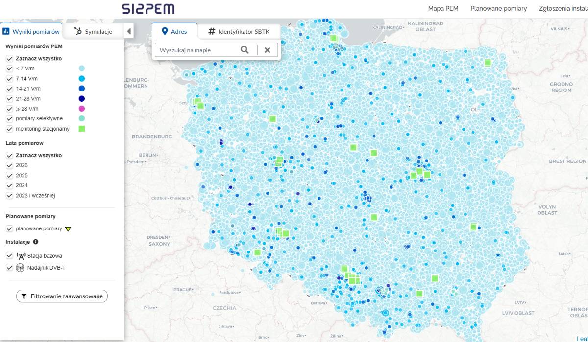 Funkcjonowanie ww. strony jest wypełnieniem zobowiązania wynikającego z pkt. 14 załącznika do Rozporządzenia Ministra Klimatu z dnia 17.02.2020 r. (Dz. U. 2022, poz. 2630) w sprawie sposobów sprawdzania dotrzymania dopuszczalnych poziomów pól elektromagnetycznych w środowisku.