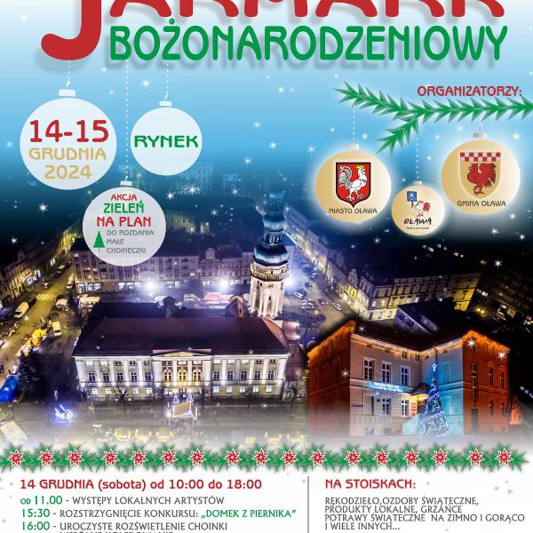W dniach 14 - 15 grudnia, na oławskim Rynku odbędzie się tradycyjny Jarmark Bożonarodzeniowy. Wydarzenie jest organizowane przez dwa samorządy Miasto Oława oraz Gminę Oława. Serdecznie zapraszamy wystawców do udziału w Jarmarku. W załącznikach karta oraz regulamin, które nale...
